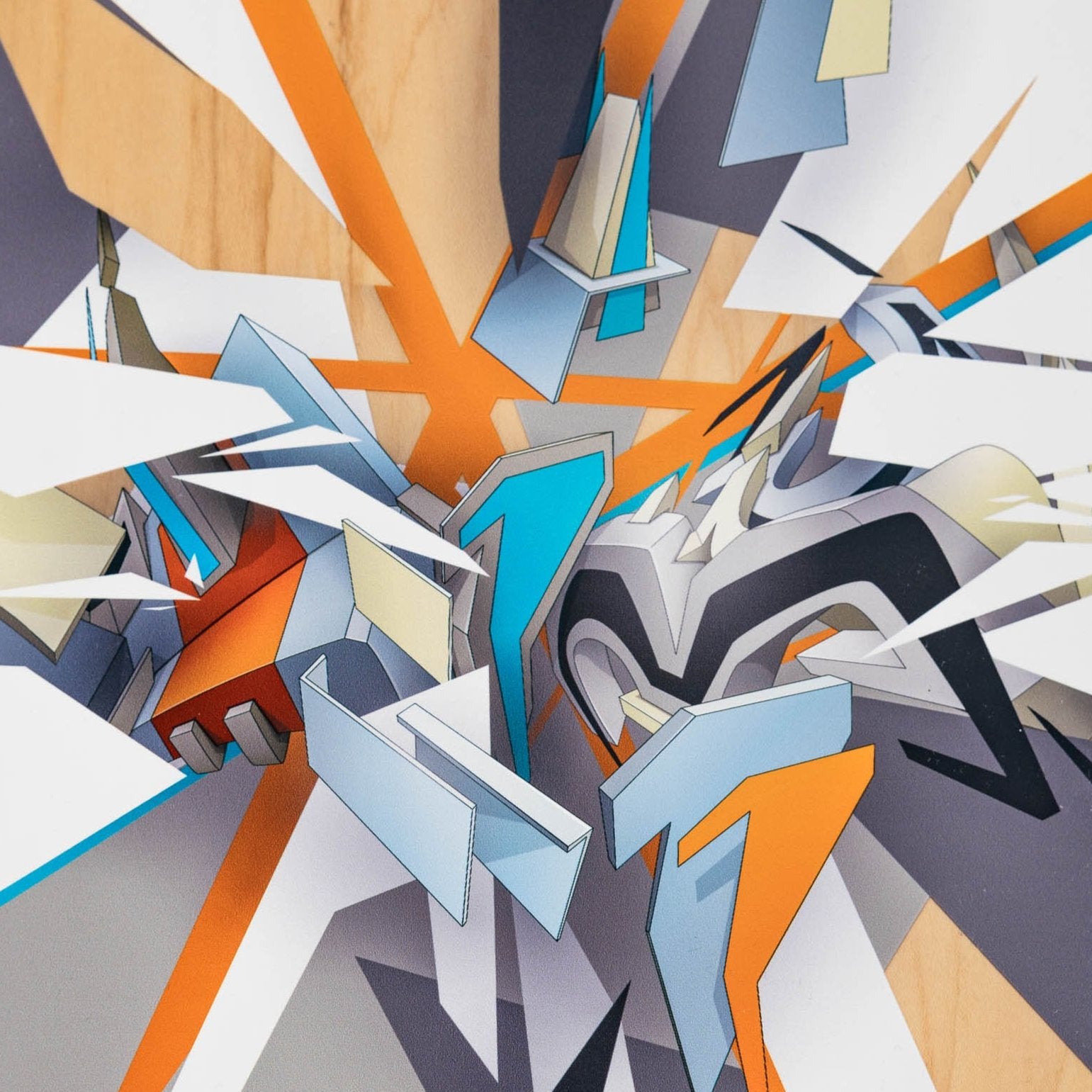 On the skateboard, this idea finds an extraordinary translation: the graphic covers the deck only partially, leaving the natural wood grain visible – the counterpart to the concrete surface on the wall. This creates a fascinating dialogue between material and design, between monumental mural and tangible art object.