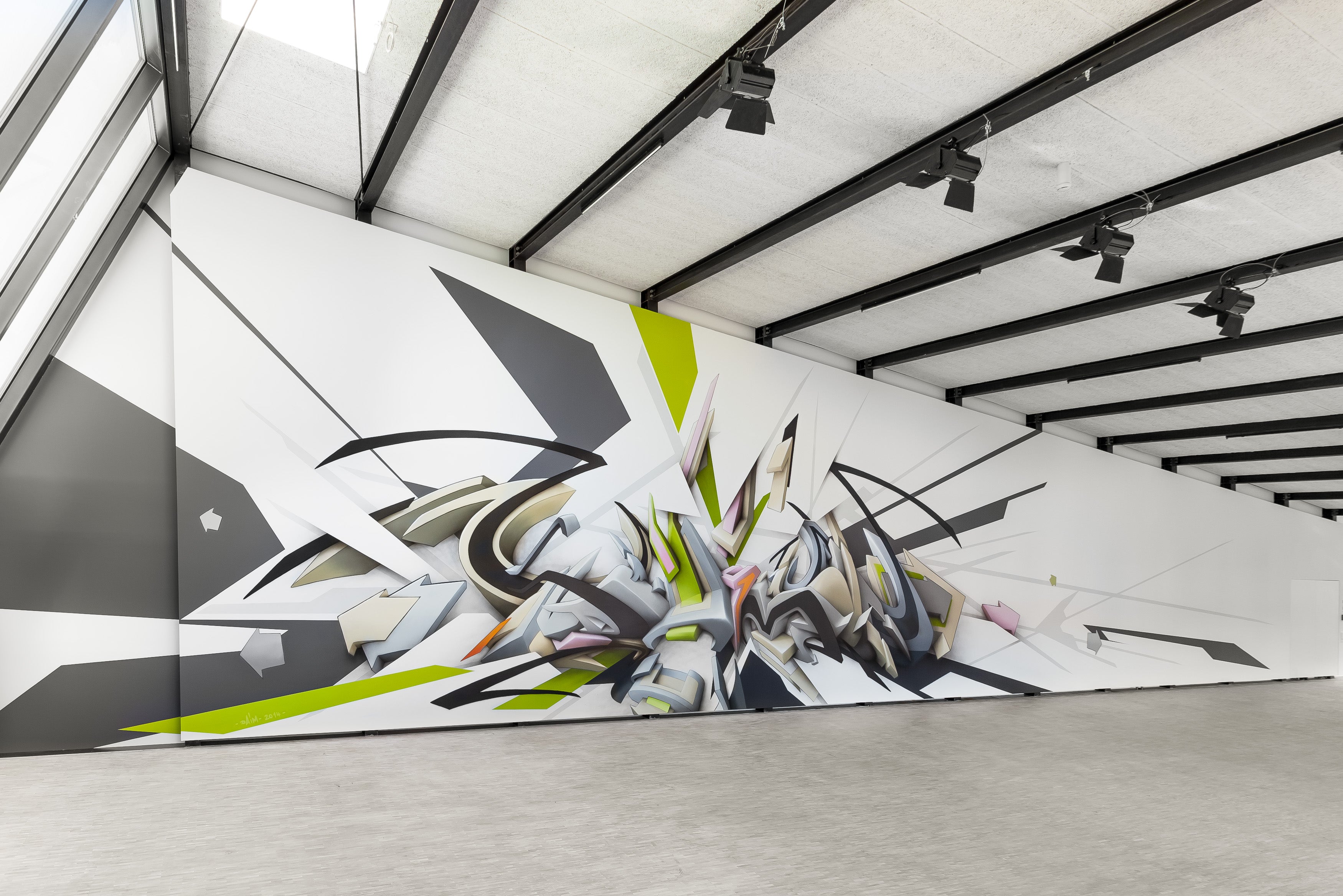The motif is based on the mural "DAIMmonomania", which was realized in 2014 as part of the solo-exhibition "Mirko Reisser (DAIM) | monomania" at the zone contemporaine in Bern, Switzerland