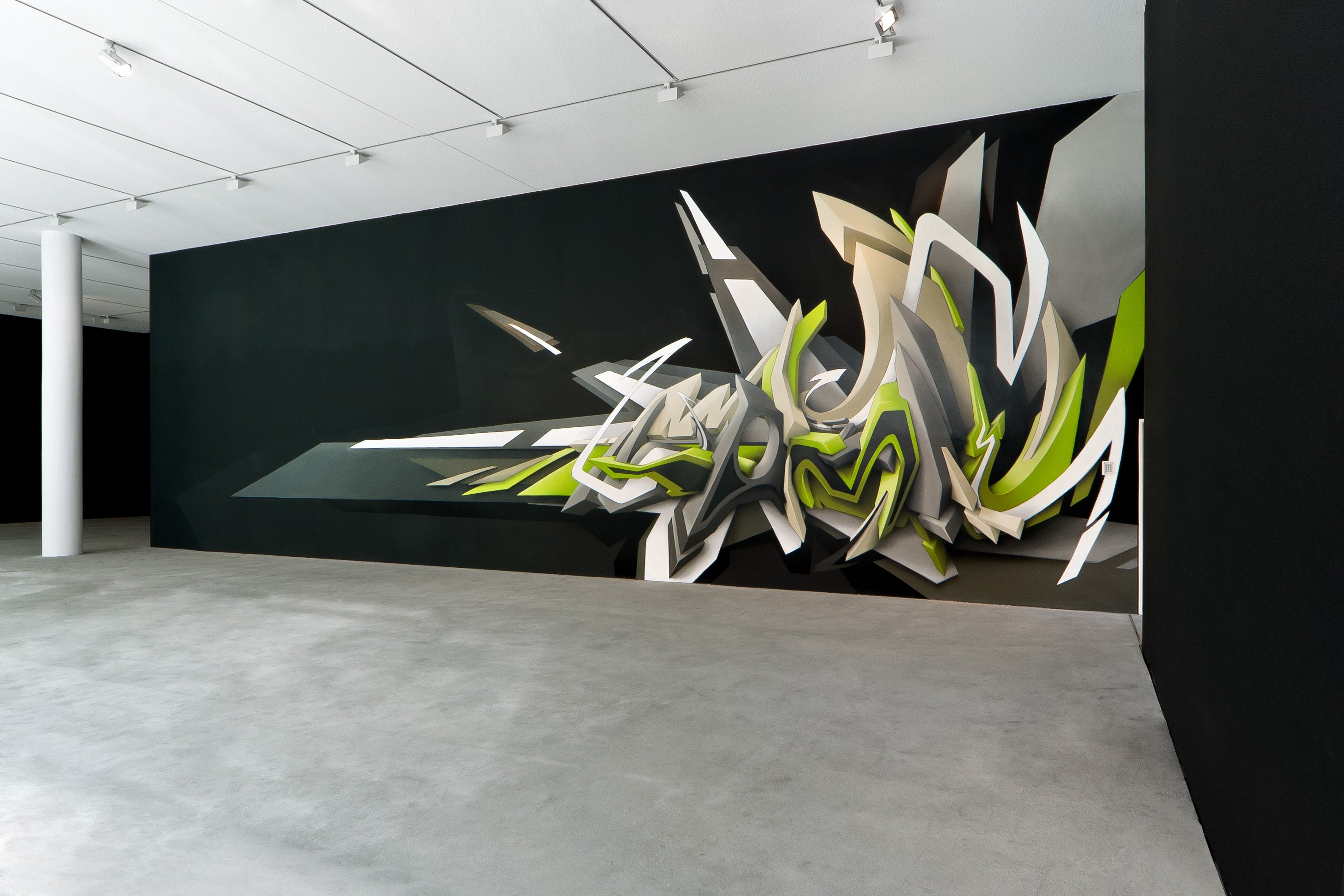 The motif is based on the mural "Swinging DAIM in Zürich", which was realized in 2007 as part of the exhibition "waking up nights" at the de Pury & Luxembourg Gallery in Zurich, Switzerland.